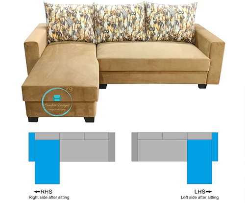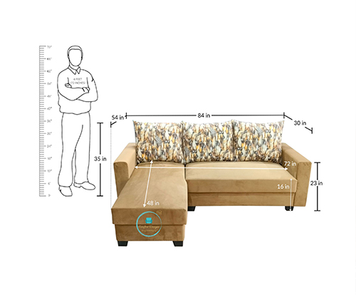 Product Dimensions : L Shape Sofa – 84 In (Length) x 30 In (Width) x 35 IN (Height) Prime Material : Sal Wood+Indian Commercial Ply, Secondary Material : Foam , Upholstery Material : Fabric Color – 1st Blue, 2nd Brown, 3rd Grey, 4th Gold Yellow. |